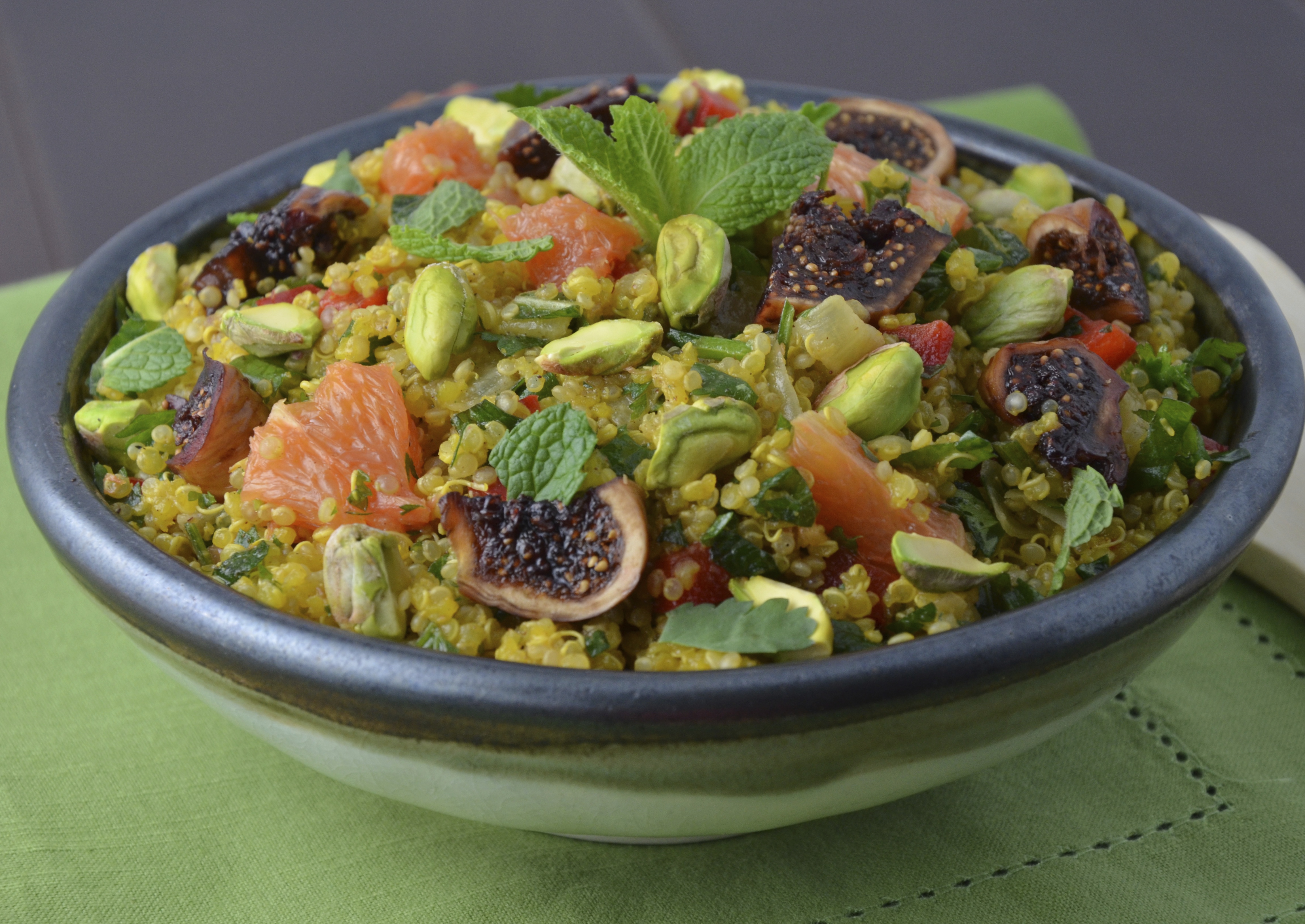 Quinoa Salad with Saffron, Drunken Figs and Pistachios