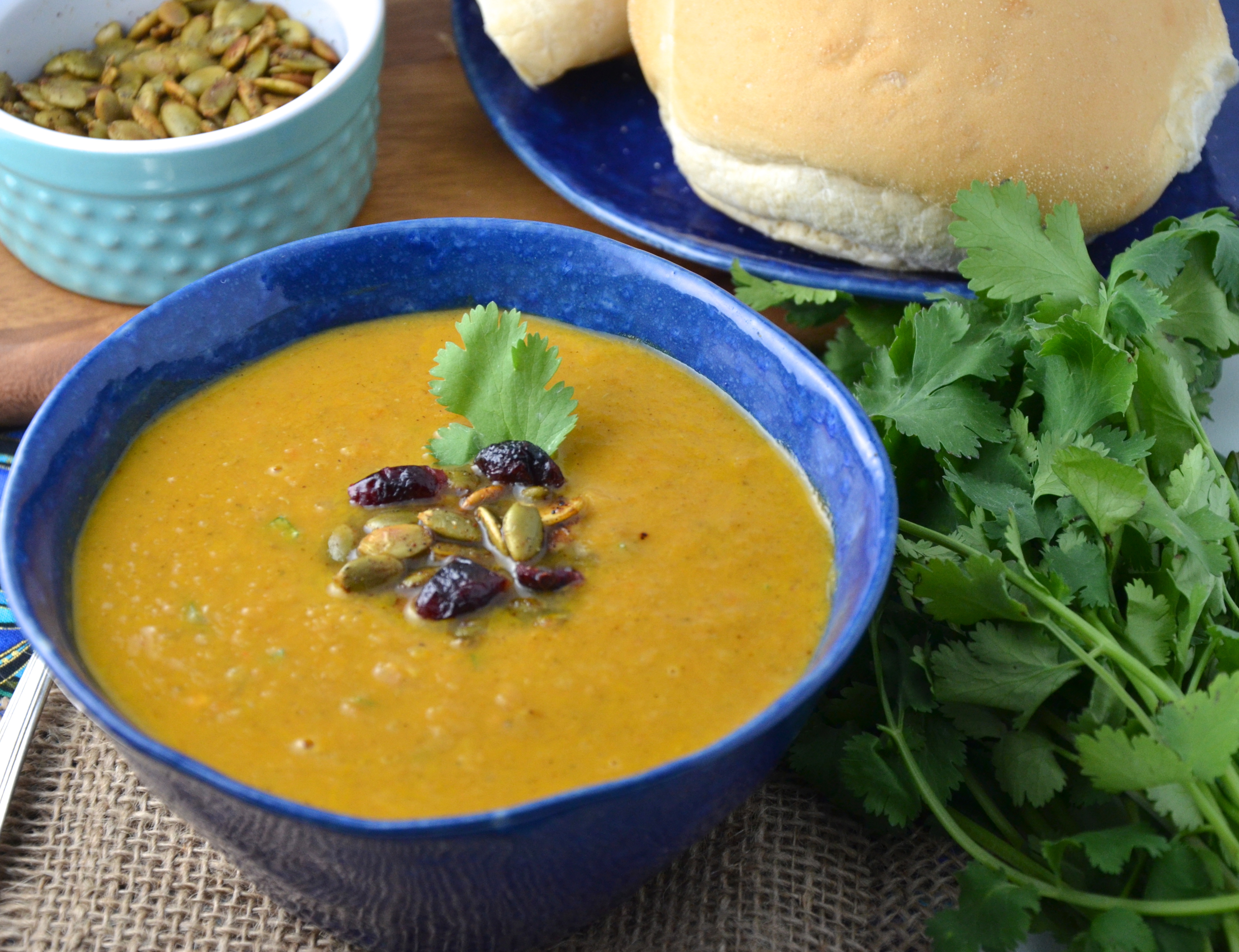 I just made the soup. It is delicious – creamy, sweet and spicy. I didn’t have a banana, but think it would have been good – next time.