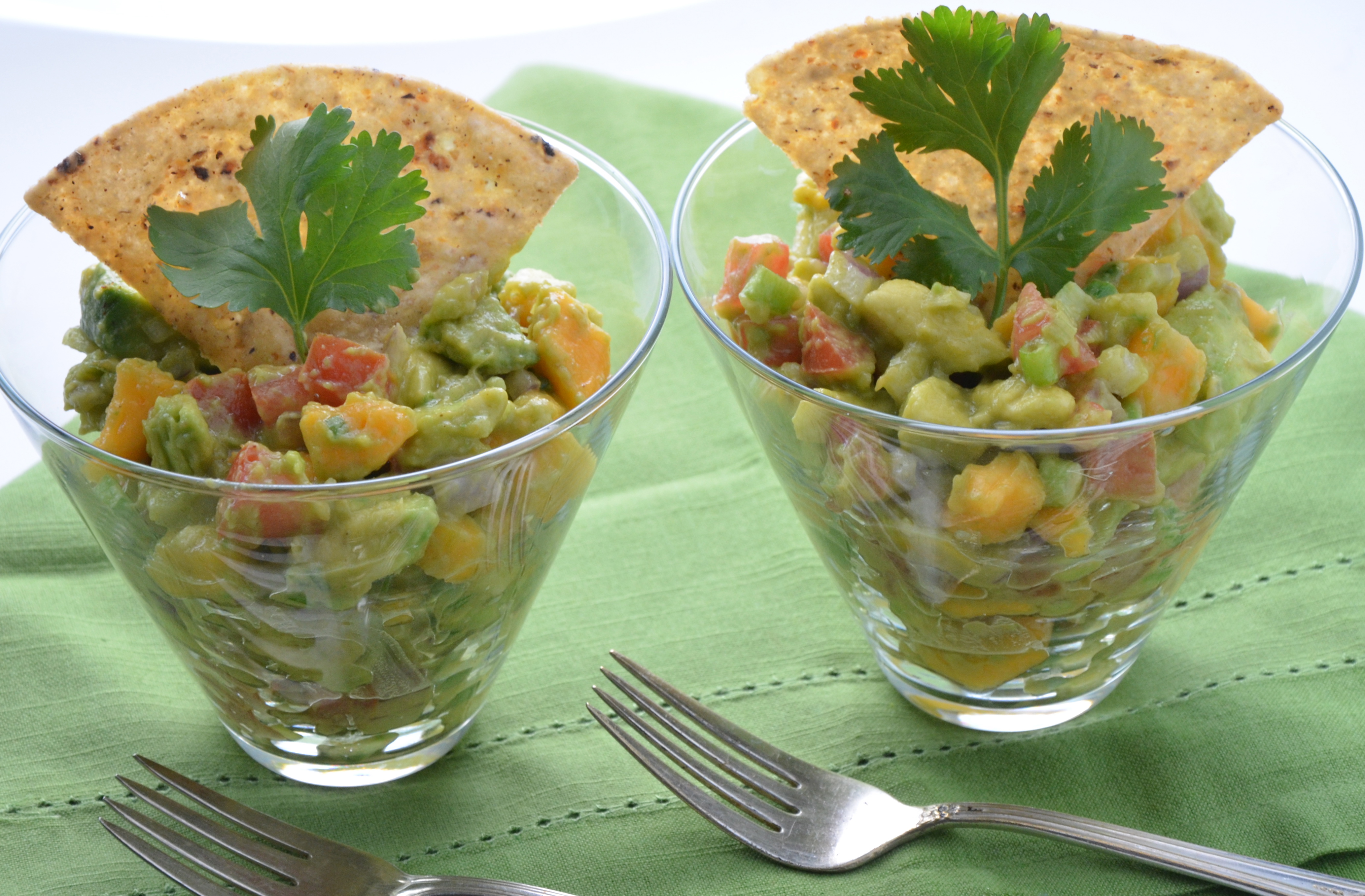 I usually love traditional guacamole, but this one sounds so interesting and flavorful! It’s so cute how you served it in the individual glasses with the chip on top. It is such a beautiful presentation. Thanks so much for sharing this unique recipe!