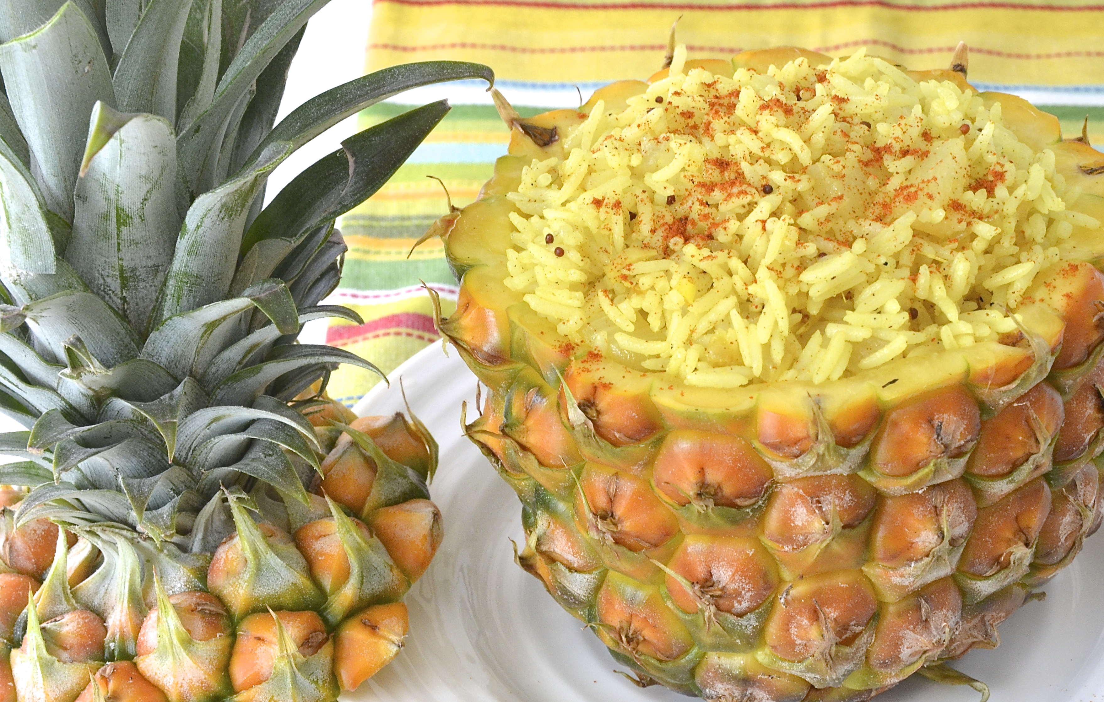 I agree with everyone about your presentation – great idea to use the shell of a pineapple. I love pineapple and rice and just grilled some fresh pineapple slices with a little brown sugar to go with some ham 🙂