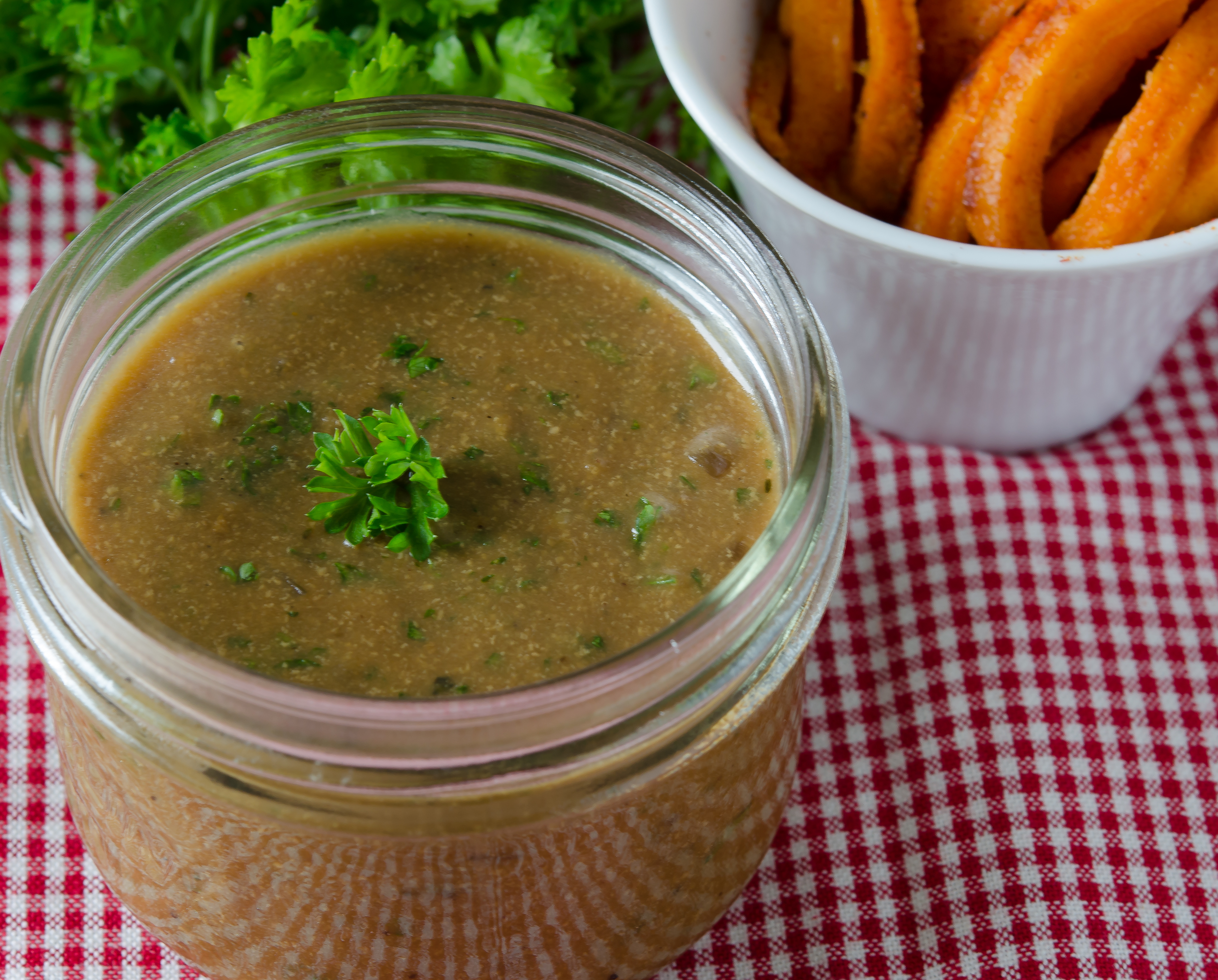 My favourite vegetarian restaurant in Vancouver serves an amazing miso gravy. It is so popular in fact, that they have begun to sell it commercially in local supermarkets. When my husband and I eat there, we inevitably find ourselves drenching our fries and other dishes in this rich, flavourful condiment.