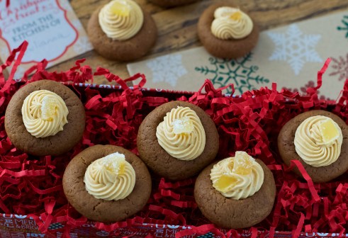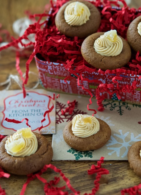 I love gingerbread “anything” and thumbprint cookies. You’ve kicked these cookies up a notch with your cream cheese icing and crystallized ginger 🙂
